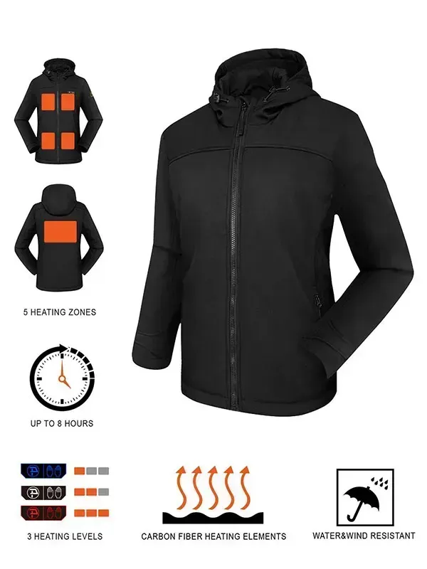 5 heating zones with hand warmers: carbon fiber heating elements driven by lithium batteries can create and distribute heat for the warm hands in the chest, back and front pockets.